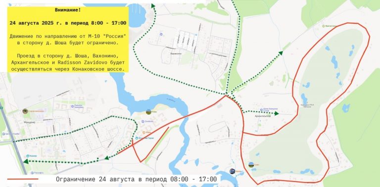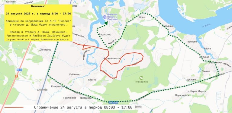 22 – 24 августа на территории курорта пройдет фестиваль спорта и соревнования по триатлону IRONSTAR ZAVIDOVO 2025. Обращаем ваше внимание на ограничения движения 24 августа, воскресенье (в основной день соревнований).