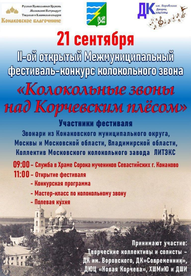 В воскресенье, 21 сентября на территории Храма Сорока Севастийских мучеников в г. Конаково пройдет второй по счету открытый межмуниципальный фестиваль-конкурс колокольного звона «Колокольные звоны над Корчевским плёсом».