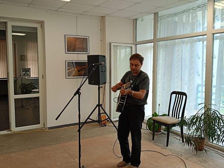 С приветственным словом выступила Лариса Владимирова, директор библиотеки, пожелала фотографам творческого развития, смелости демонстрировать свое искусство и выразила надежду на дальнейшее сотрудничество. На мероприятии традиционно звучала музыка: музыкант Андрей Леонов выступил с несколькими композициями группы «Кино», почтив память Виктора Цоя, а также с авторскими песнями. Впечатленные зрители не хотели отпускать Андрея, поэтому попросили исполнить еще одну песню на бис.