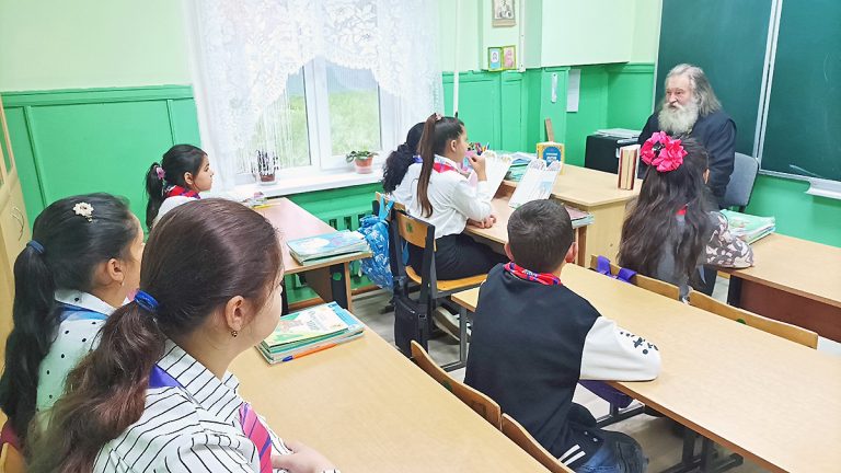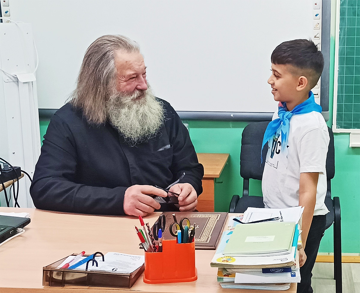 На этой неделе в стенах начальной общеобразовательной школы поселка Второе Моховое учащихся посетил отец Сергий, настоятель Крестовоздвиженской церкви села Свердлово.