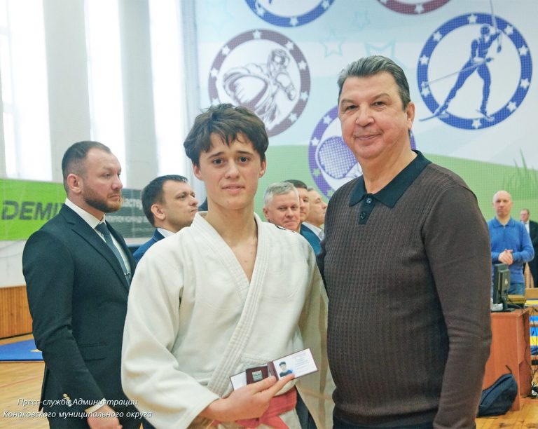Глава вручил удостоверение Мастера спорта России воспитаннику СШ «Единоборства» Серафиму Сударикову.