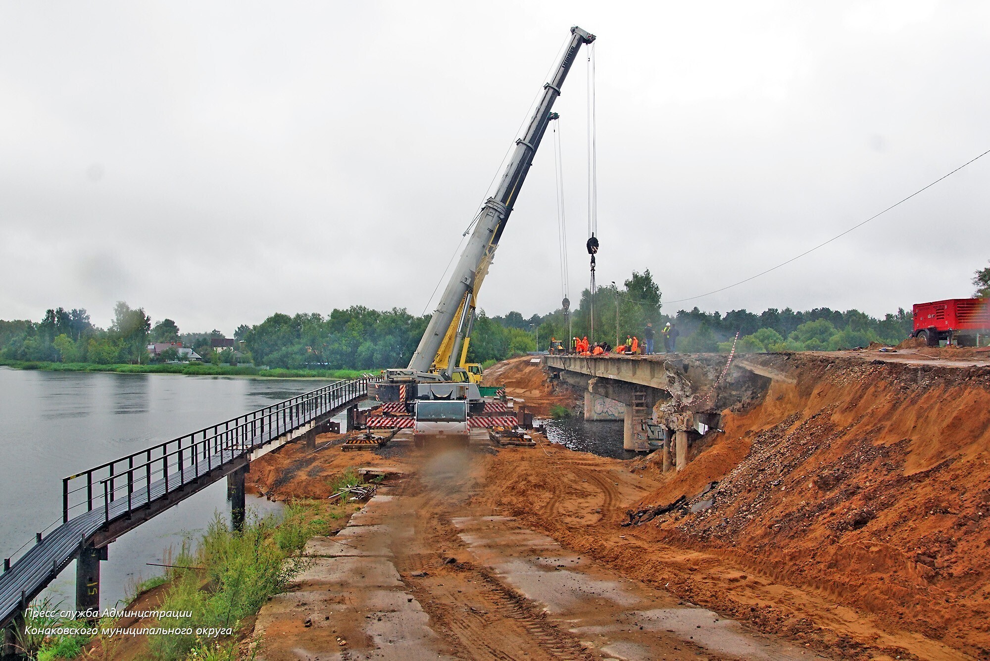 Продолжается капитальный ремонт главного моста через Донховку в г. Конаково