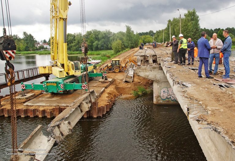 Продолжается капитальный ремонт главного моста через Донховку в г. Конаково