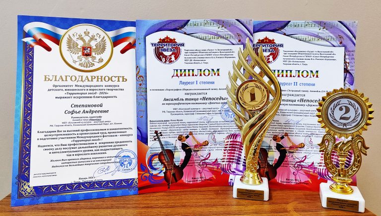 С огромной гордостью и радостью поздравляем ансамбль танца «Непоседы», руководителя Степанову Софью Андреевну с успешным выступлением на Международном многожанровом конкурсе «Территория звезд».