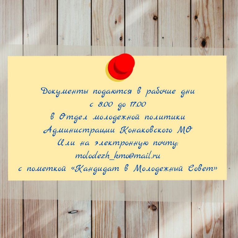 Также можно направить документы на электронную почту: molodezh_kmo@mail.ru с пометкой «Кандидат в Молодежный Совет».