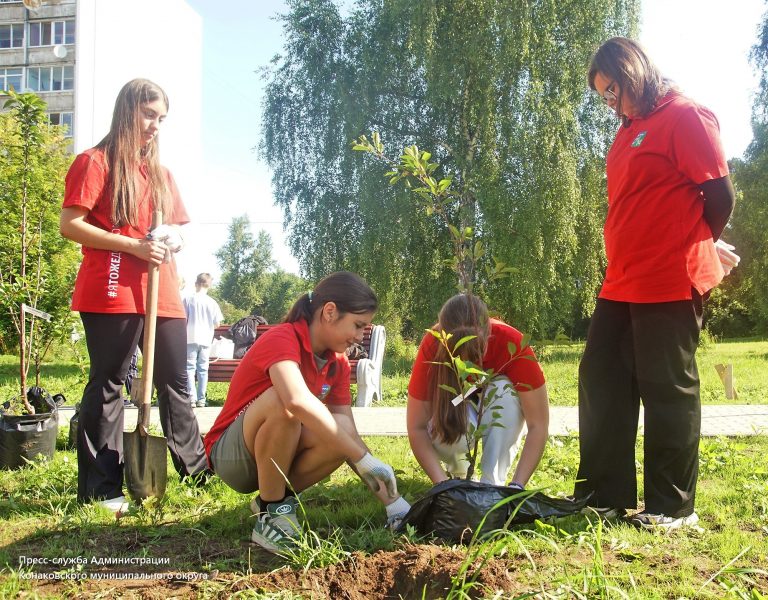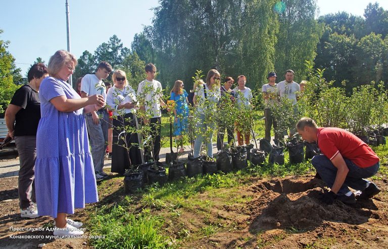 Несколько саженцев посадил Глава Конаковского муниципального округа Алексей Пляскин. Радует, что было немало детей и подростков: активистов молодежных движений и ЦМП «Иволга».