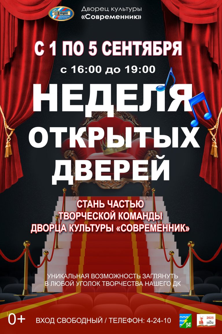 ДК «Современник» приглашает на дни открытых дверей всей семьёй! В эти дни можно: