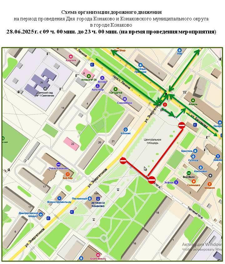 Также, согласно Распоряжению Главы округа № 207 от 19.06.2025 г. на время проведения праздничных мероприятий ограничено движение автотранспорта в районе городской площади с 9.00 до 23.00: по ул. Энергетиков (район дома № 18), ул. Энергетиков (район магазина «Ермолино»), на пересечении ул. Энергетиков с ул. Торговый проезд. Схема прилагается.