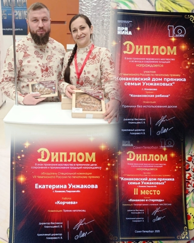 Жюри и гости достойно оценили пряничную продукцию. Вариант «Конаково и стерлядь» занял почётное 2 место среди мастерских. Помимо этого пряник «Корчева» победил в специальной номинации «Пряник-летопись», а пряник «Конаковская рябина» победил в номинации «Пряник без использования доски».