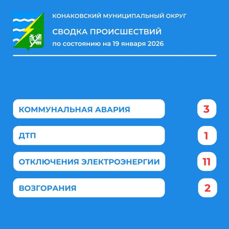 По информации Единой дежурной диспетчерской службы (ЕДДС) Конаковского муниципального округа, за прошедшую неделю с 12 по 18 января 2026 года в округе произошло: 11 аварийных отключений электроэнергии, 3 аварии на объектах ЖКХ, 2 пожара, 1 ДТП.