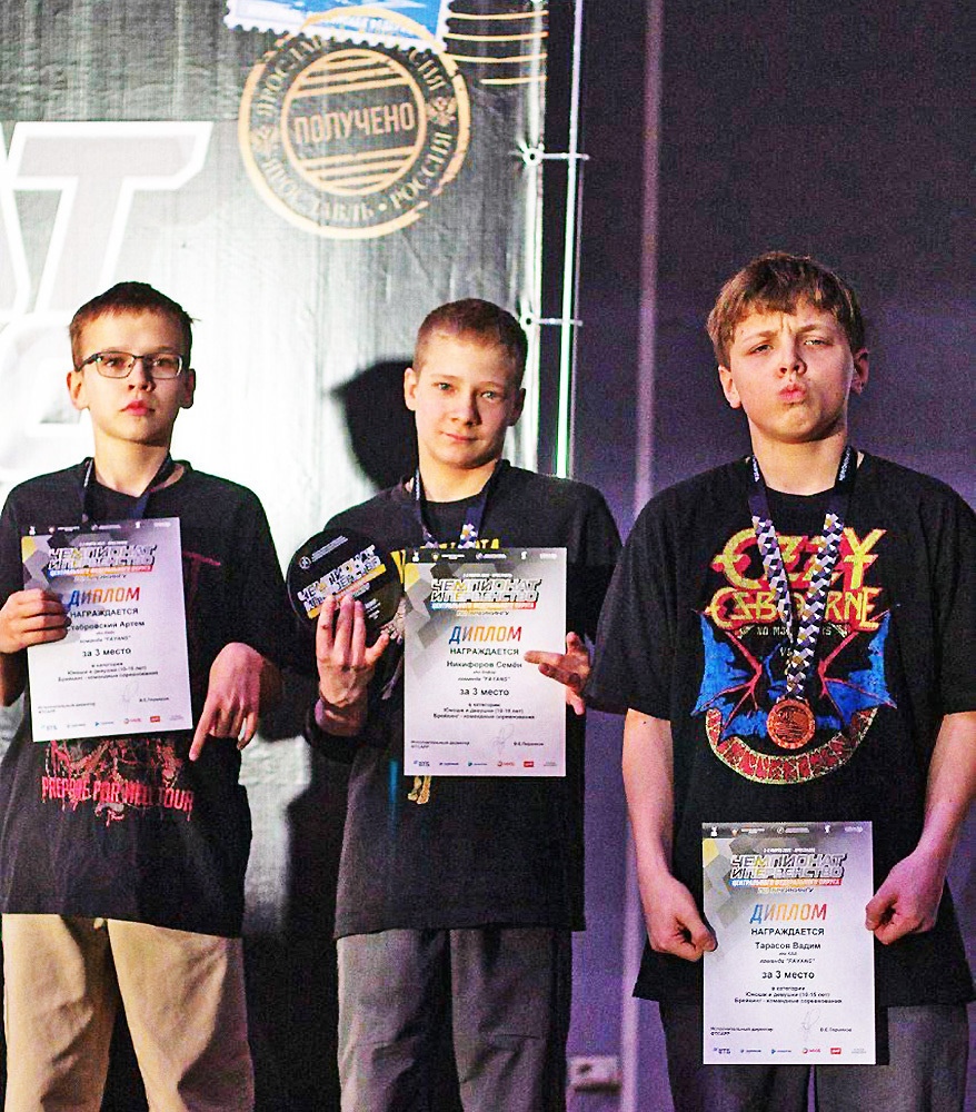 3 место- FAYANS crew (в составе: Артём Стабровский, Вадим Тарасов, Семён Никифоров) в номинации «команды 10-15 лет».