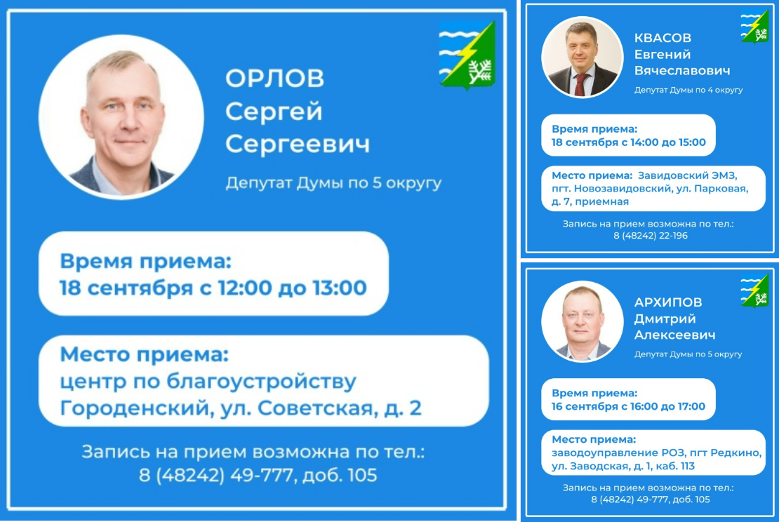 16 и 18 сентября проведут личный прием граждан депутаты Думы Конаковского муниципального округа.