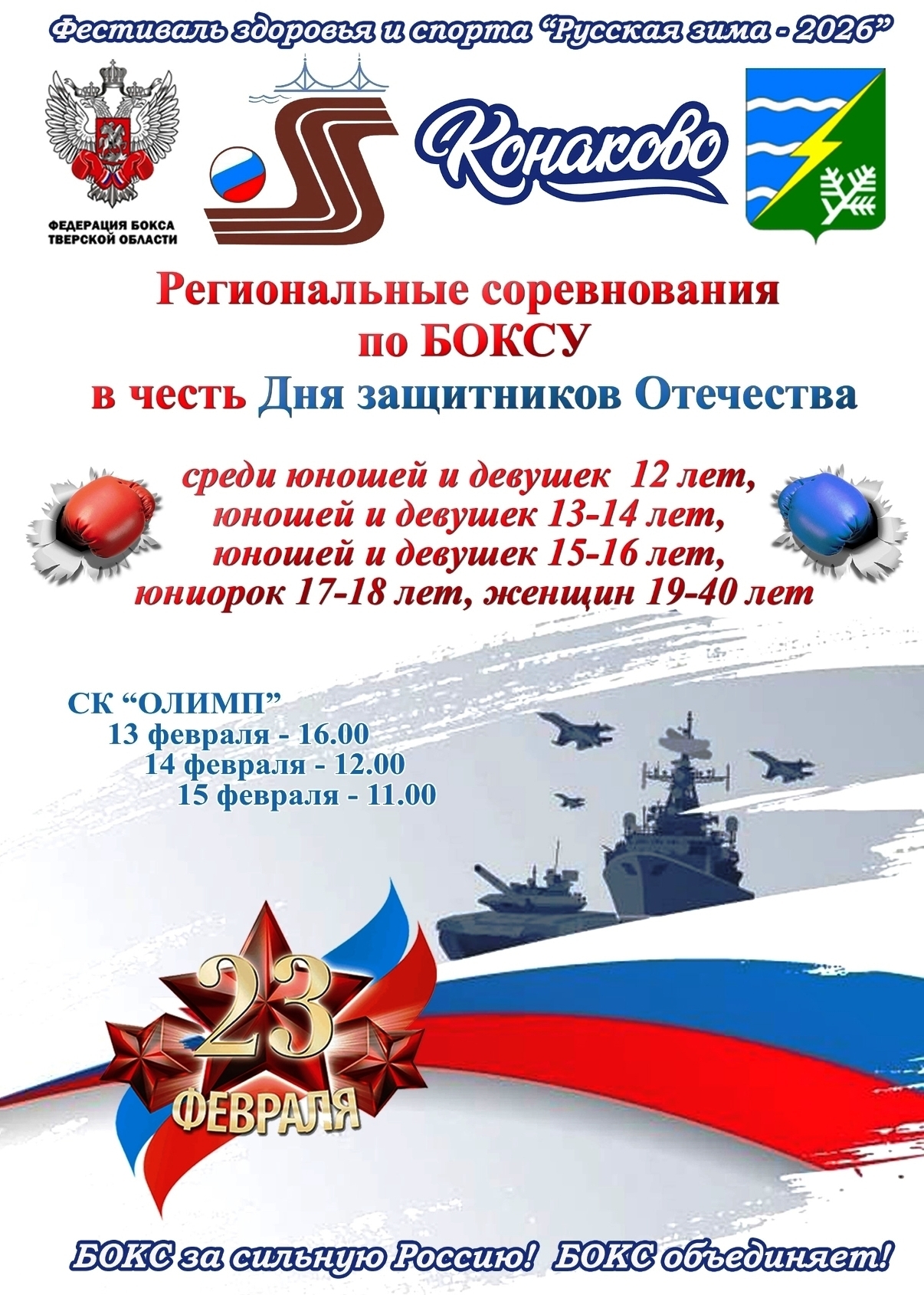 Место проведения: СК «ОЛИМП» ул.Строителей, 15, г. Конаково, Тверская область.