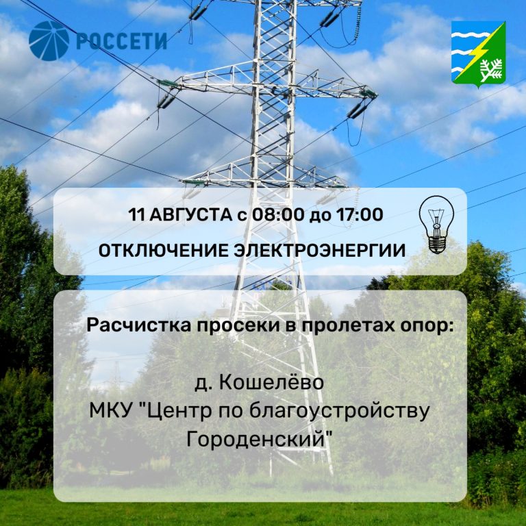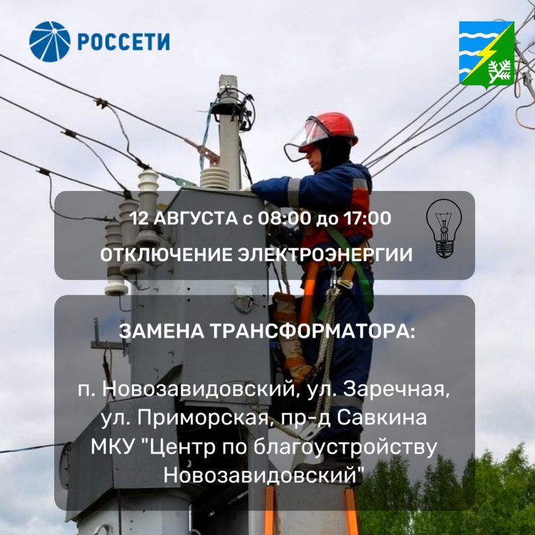 12 августа с 08:00 до 17:00 — замена трансформатора п. Новозавидовский, ул. Заречная, ул. Приморская, пр-д Савкина МКУ «Центр по благоустройству Новозавидовский»