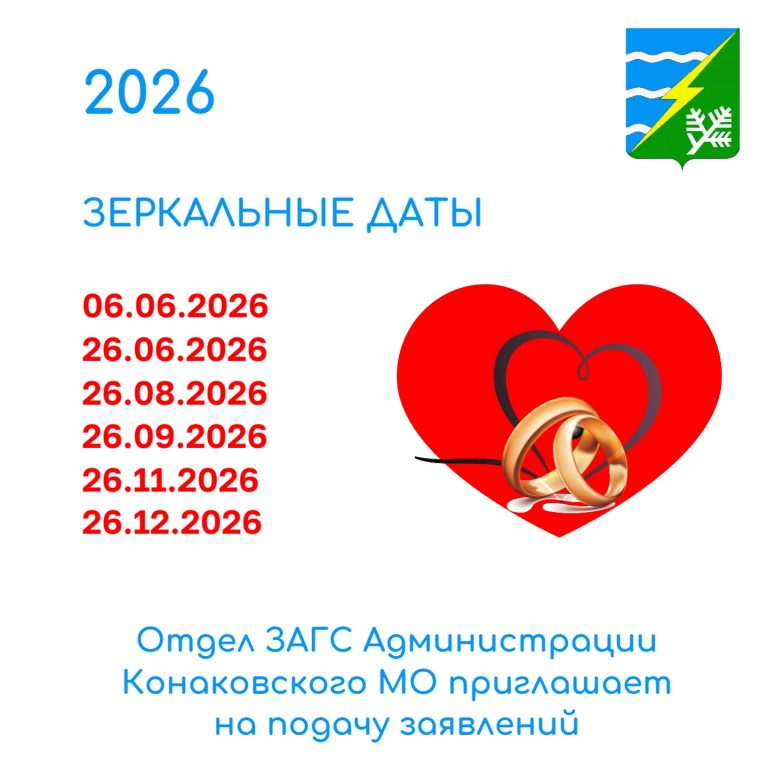 Отдел ЗАГС Администрации Конаковского округа приглашает молодоженов для регистрации брака в зеркальные даты