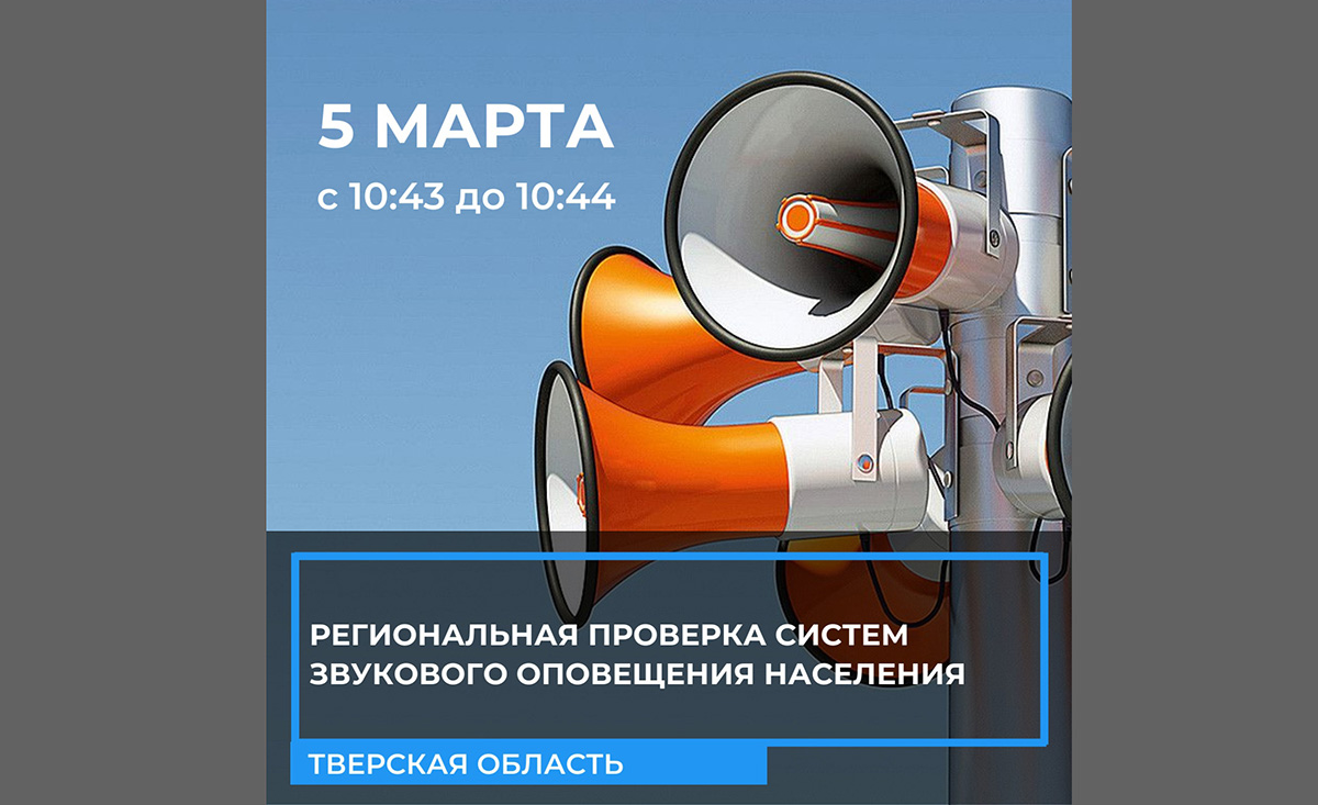 Сегодня, 5 марта в Тверской области с 10.43 до 10.44 будет проводиться проверка региональной автоматизированной системы централизованного оповещения населения с замещением телеэфира.