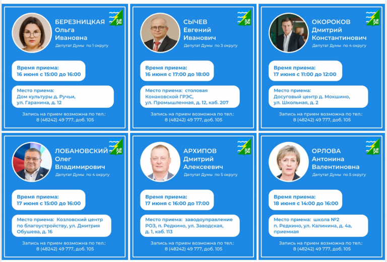16, 17 и 19 июня проведут личный прием граждан депутаты Думы Конаковского муниципального округа.