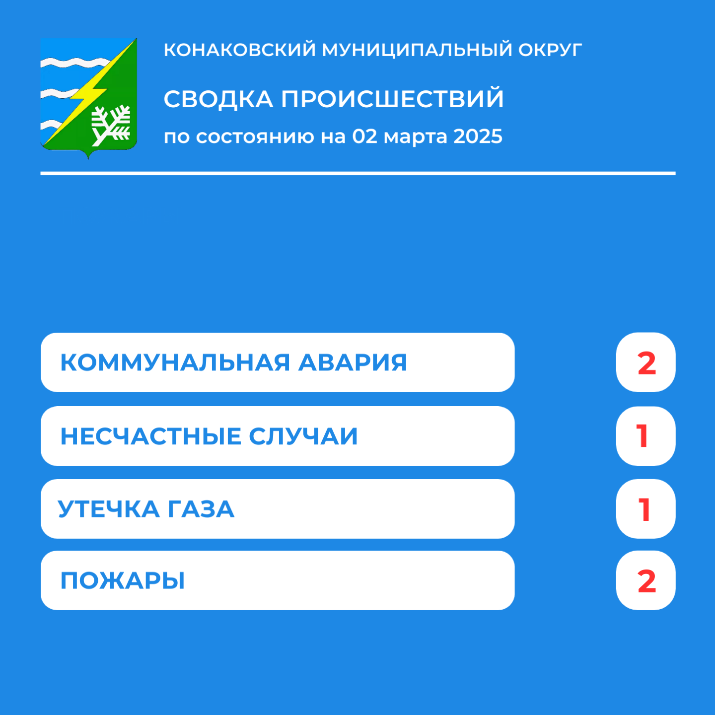 По сообщению единой дежурной диспетчерской службы Конаковского муниципального округа, за прошедшую неделю с 24 февраля по 2 марта в округе произошло 2 происшествия на объектах ЖКХ, 2 пожара и 2 прочих происшествия.