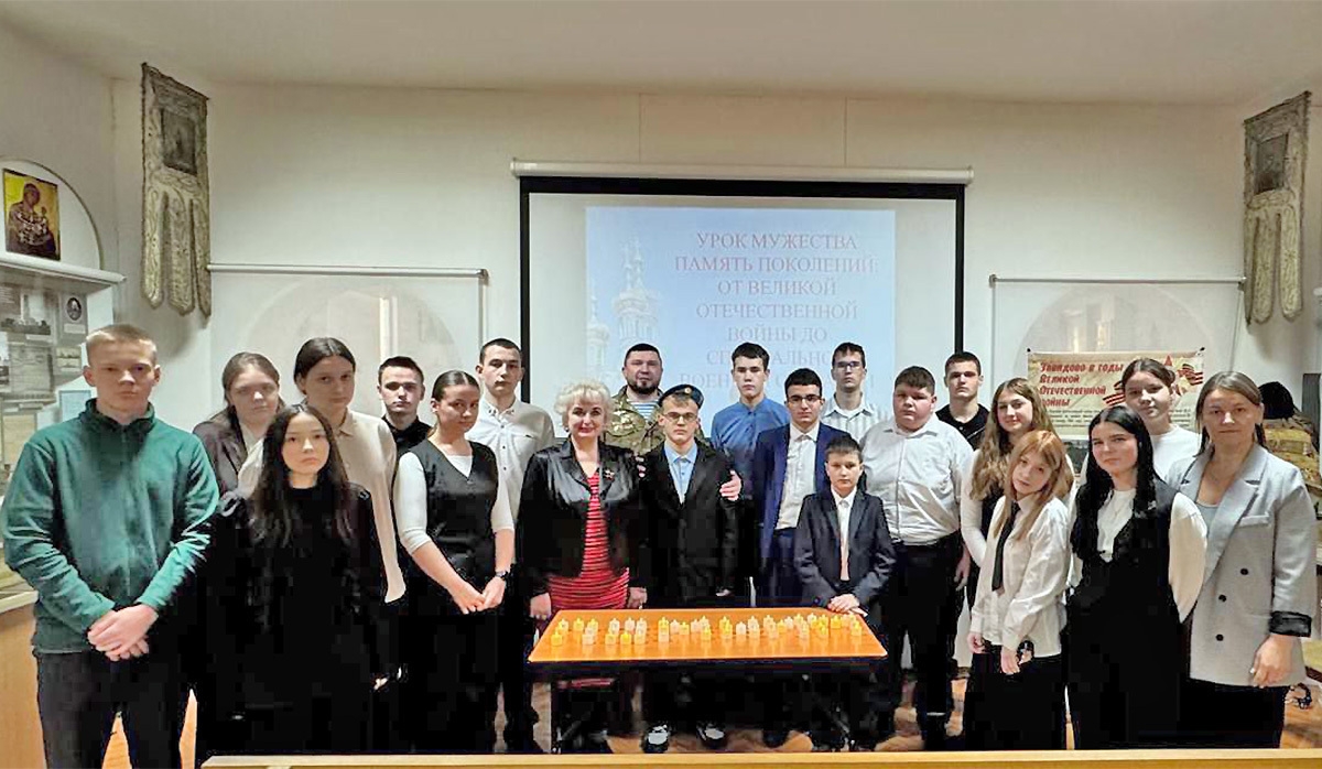 Сегодня участники специальной военной операции продолжают эту традицию самопожертвования, защищая наши ценности и суверенитет. Их стойкость и преданность служат примером настоящего мужества и любви к родине. Мы благодарны каждому за готовность встать на защиту Родины в непростое время. В завершении «Урока мужества» было составлено слово ПАМЯТЬ из свечей. Пусть память о героических поступках вдохновляет всех нас жить достойно, ценить мир и свободу, которые мы имеем. Мы будем помнить и чтить всех, кто сражается за наше будущее, за нашу независимость и целостность!