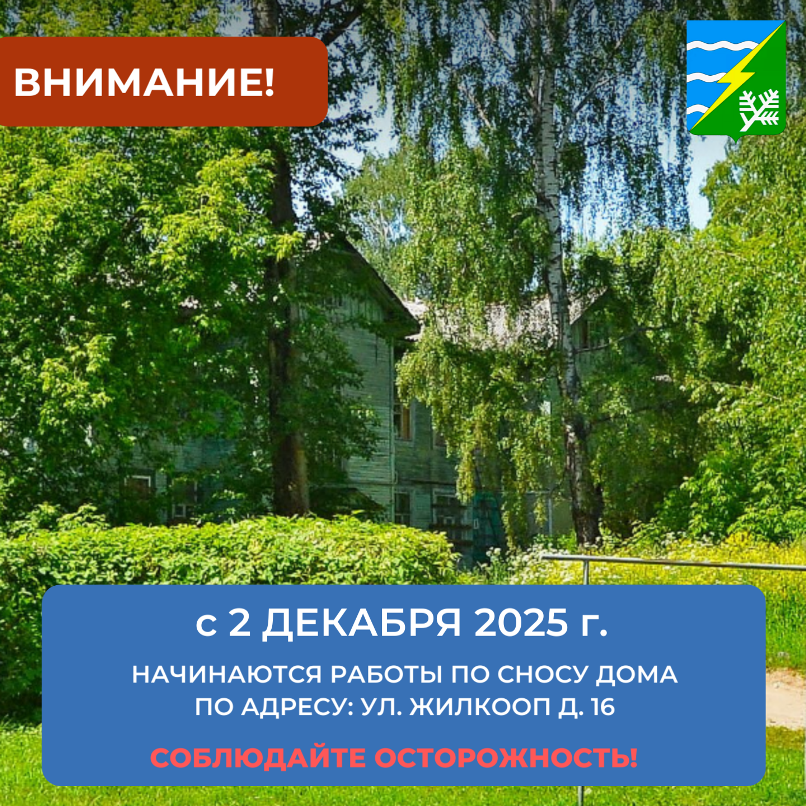С 2 декабря 2025 года начаты работы по сносу многоквартирного дома по адресу: г. Конаково, ул.Жилкооп, д.16. Убедительно просим соблюдать осторожность, беречь своих детей, не подходить к месту производства работ! Выбирайте удобные и безопасные пути обхода!