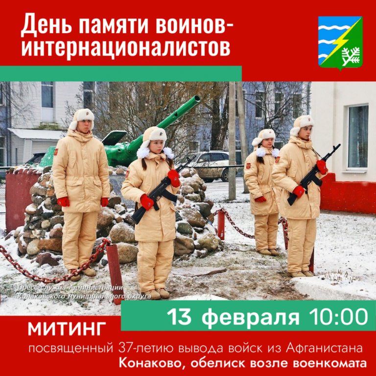 13 февраля 2026 г. в 10:00 в Конаково состоится митинг, посвященный 37-летию вывода советских войск из Афганистана.