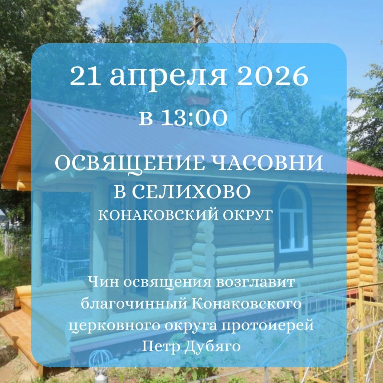 21 апреля 2026 г. в день Радоницы в 13:00 состоится освящение часовни «Не Рыдай Мене Мати» на городском кладбище села Селихово.