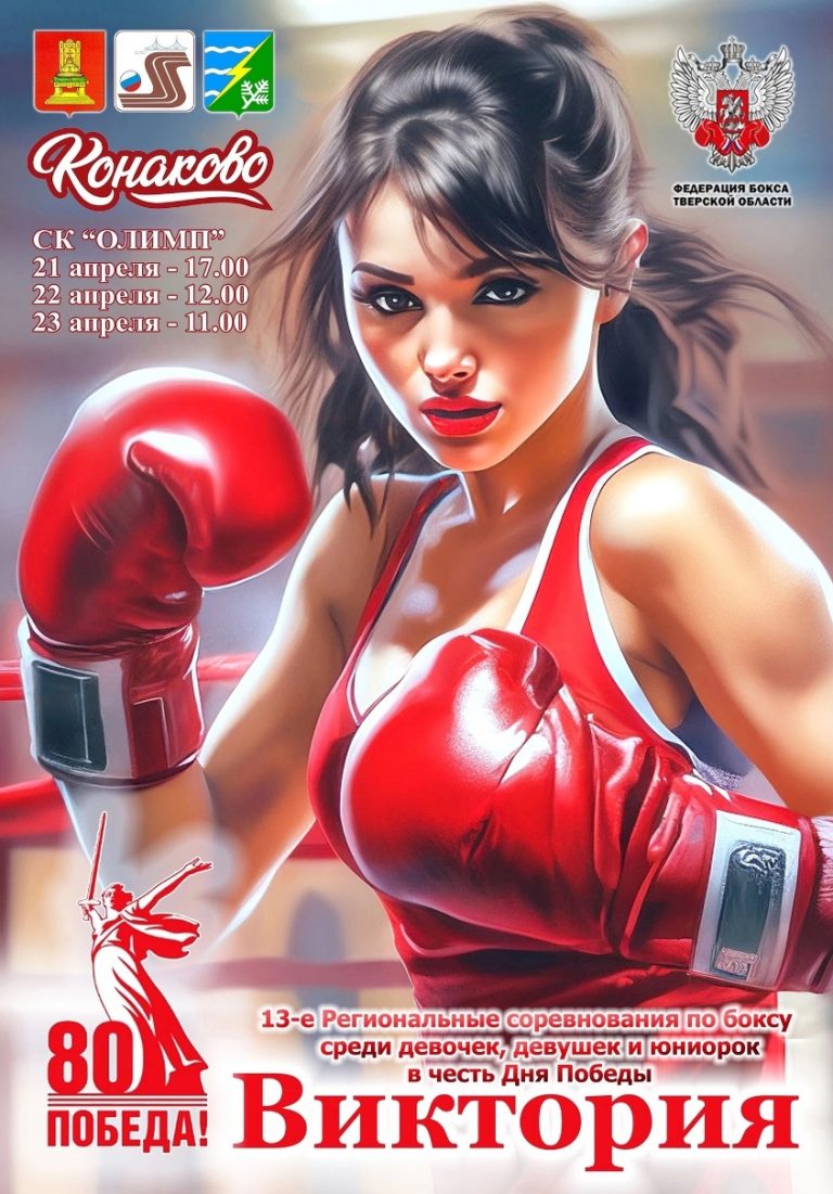 С 21 по 23 апреля в Конаково состоятся традиционные 13-е региональные соревнования по боксу среди девочек, девушек и юниорок в честь Дня Победы "Виктория".